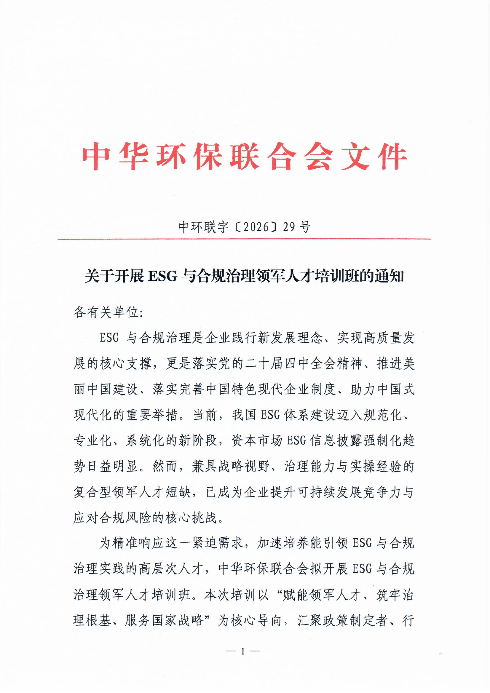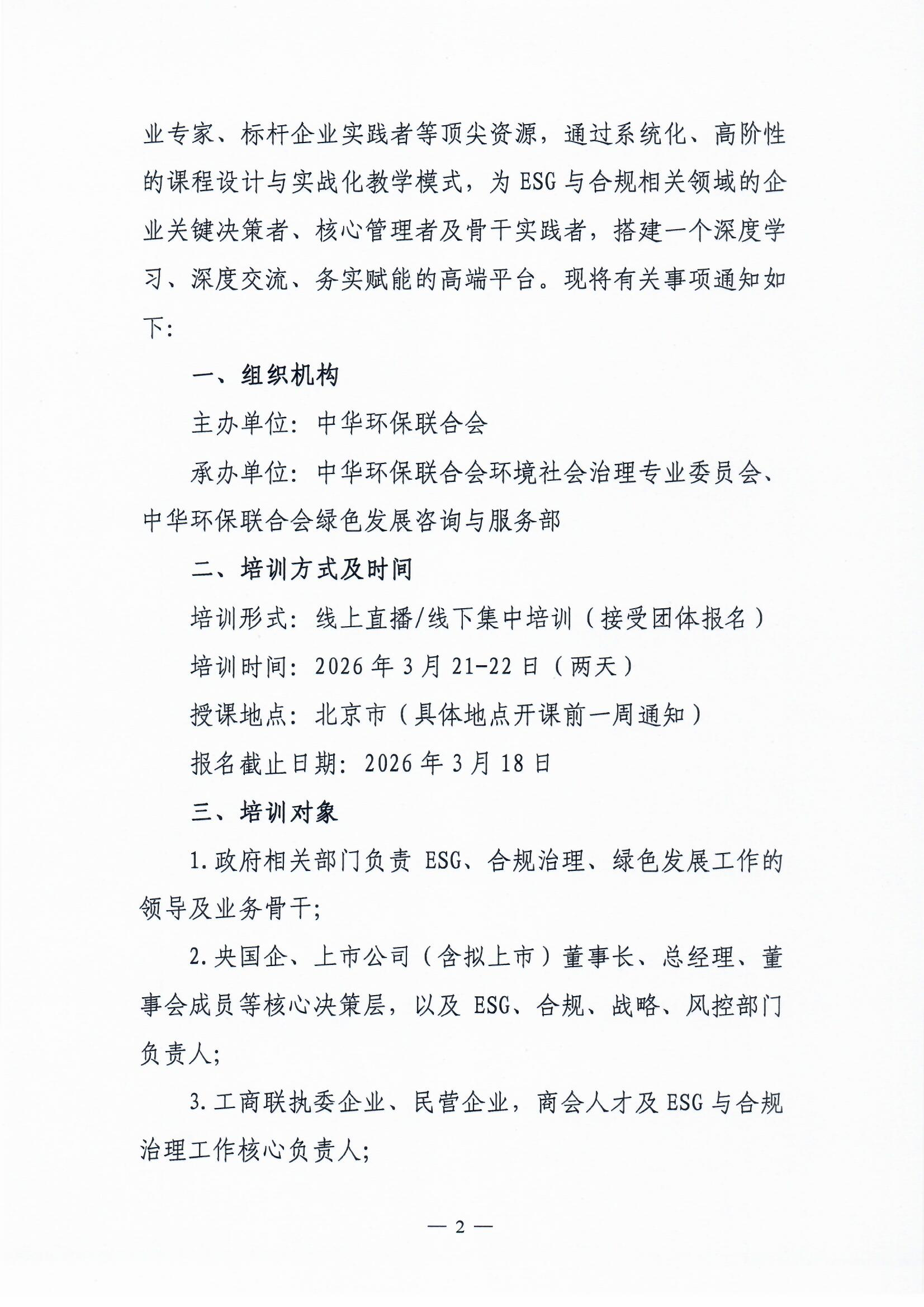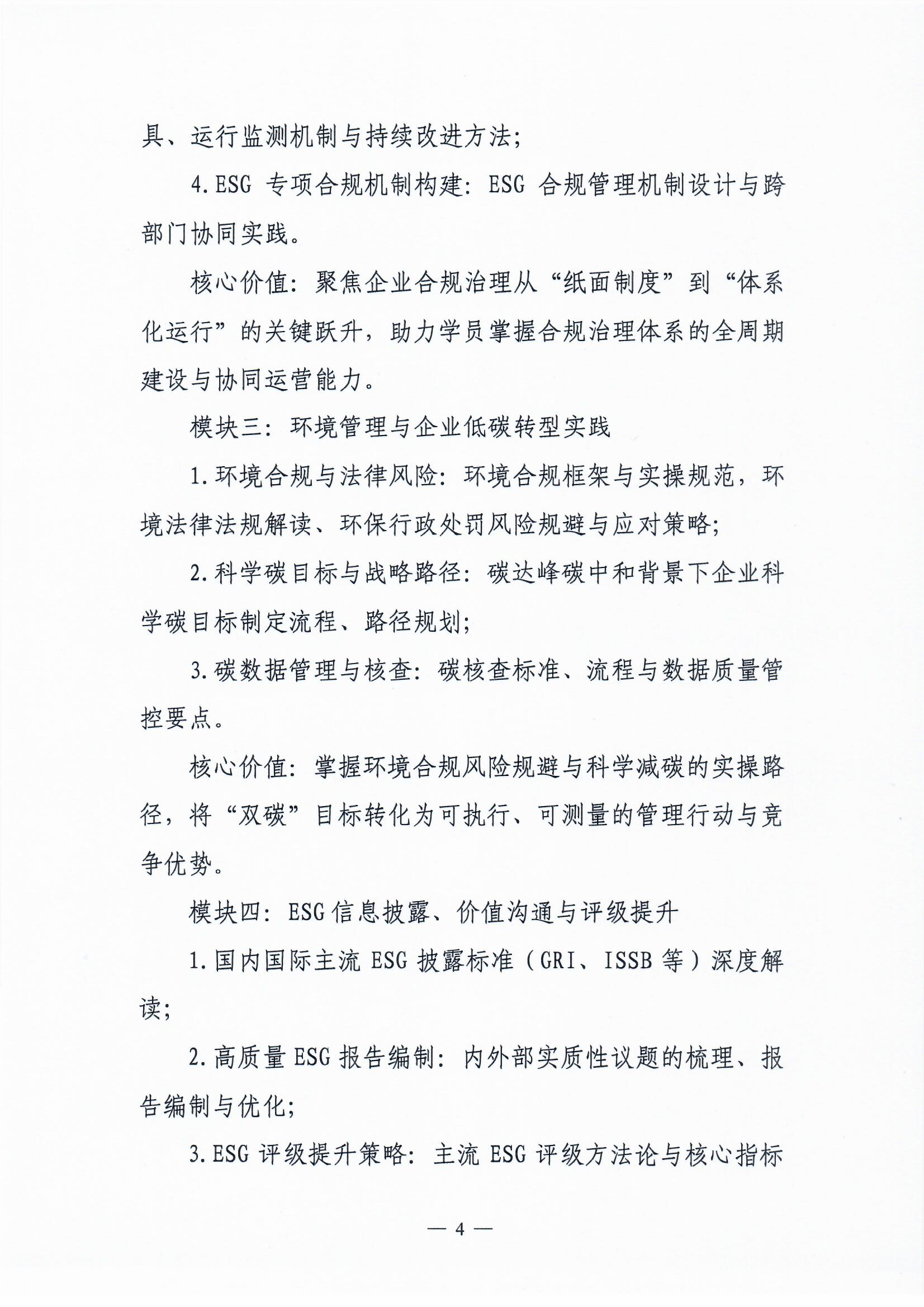 关于开展ESG与合规治理领军人才培训班的通知