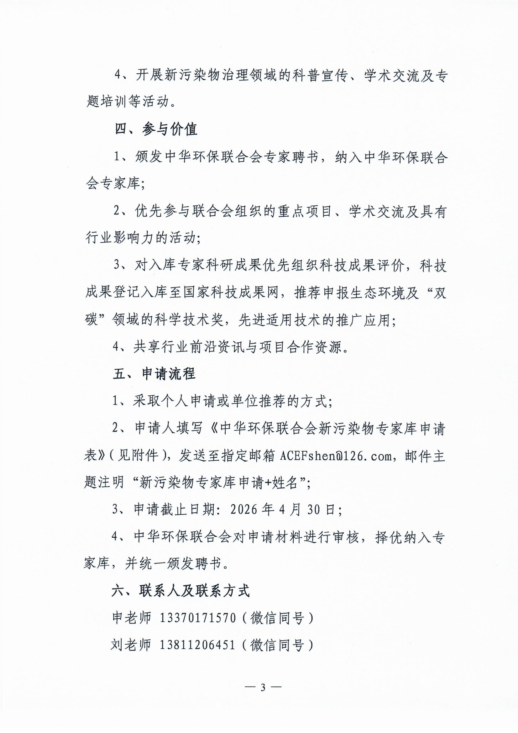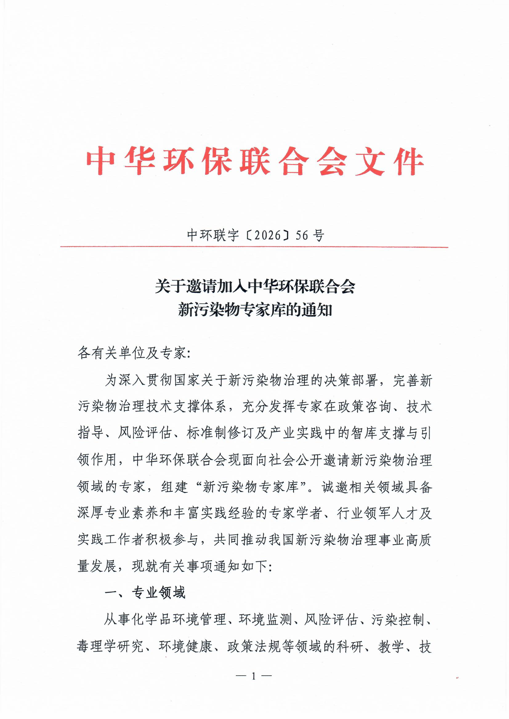 关于邀请加入中华环保联合会新污染物专家库的通知