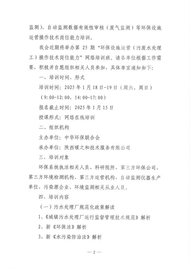 关于举办第25期“环保设施运营(污废水处理工)操作技术岗位能力”网络培训班的通知