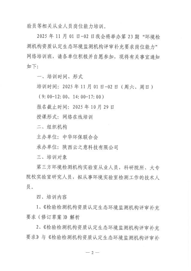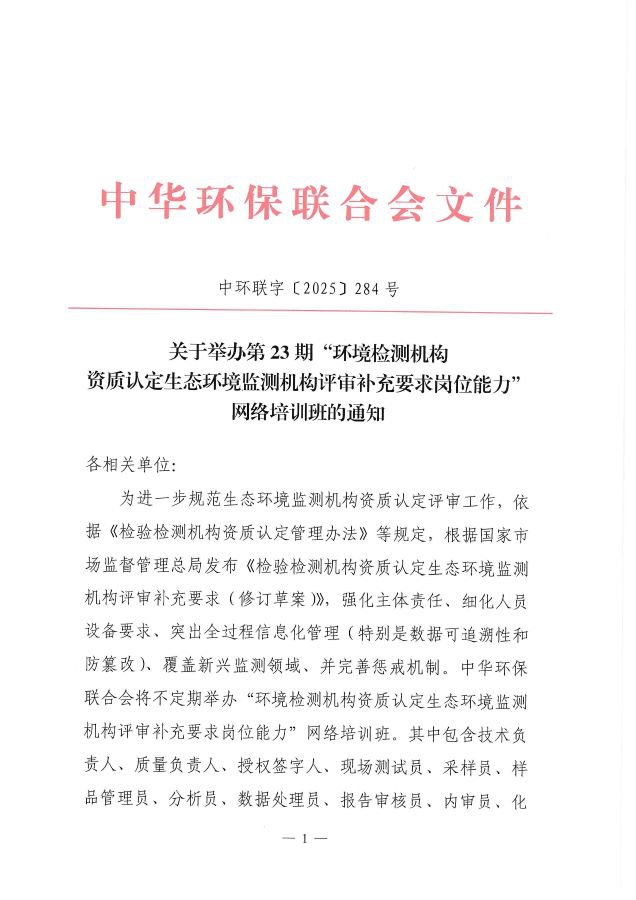 关于举办第23期“环境检测机构资质认定生态环境监测机构评审补充要求岗位能力”网络培训班的通知