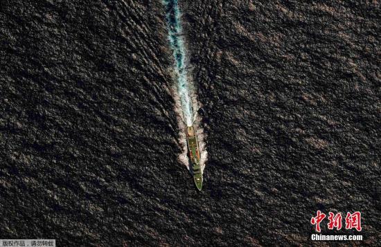 当地时间2014年4月13日,澳大利亚印度洋,新西兰皇家空军“猎户座”飞机拍摄一艘澳大利亚船只在继续搜寻失联马航客机MH370。